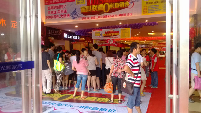 0利直销,抢占市场。8月3-4日由好家网与光辉家具联手举办的2013华南第3届家具联盟0利直销会已经圆满落幕。此次活动不仅有厂价补贴、商家让利,更有商场提供5%的货款补贴。真正的0利直销释放价格极限。而且在本次活动中主办方提供iphone5手机、家用冷暖多功能空调、品牌全自动洗衣机、12倍变焦品牌数码相机等千件豪礼买满即送。当然,必不可少的还有现场超级抽奖:32寸液晶电视、进口品牌数码相机等奖品每日送出。每天最快下单的前五名业主,以及当天下单金额最高的业主还能获得格外的惊喜大礼。如此丰厚的奖品,还有种类齐全,0利直销的万款家具,吸引了上千名业主前往现场进行选购。商场更是贴心的延长了活动期间的营业时间,让业主们有更多的时间享受活动优惠。