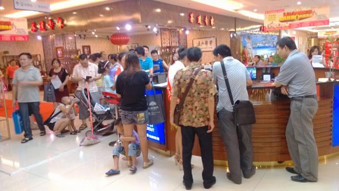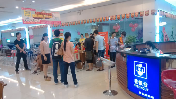 导购员正带着选好家具的业主在总收银台交款中......